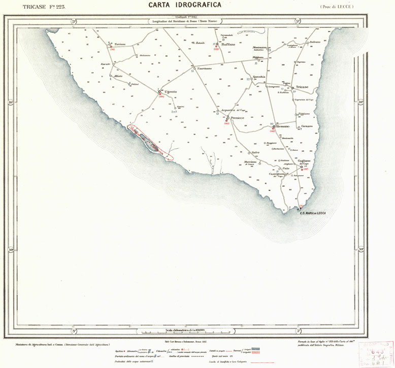 CARTA IDROGRAFICA DEL REGNO D'ITALIA - Foglio 223 - Tricase