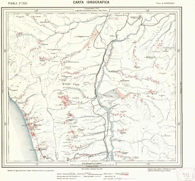 CARTA IDROGRAFICA DEL REGNO D'ITALIA - Foglio 229 - Paola