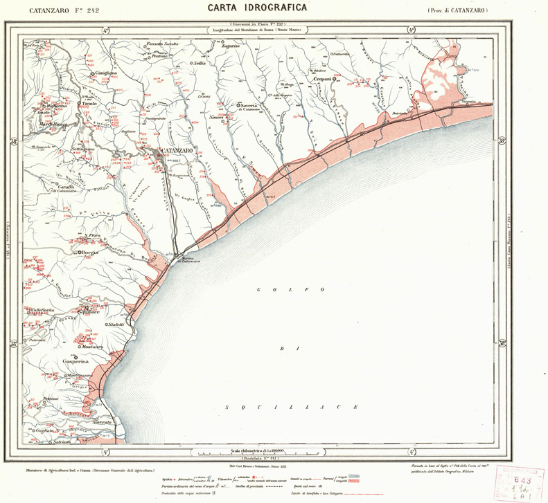 CARTA IDROGRAFICA DEL REGNO D'ITALIA - Foglio 242 - Catanzaro