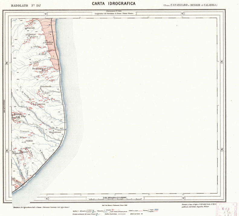 CARTA IDROGRAFICA DEL REGNO D'ITALIA - Foglio 247 - Badolato