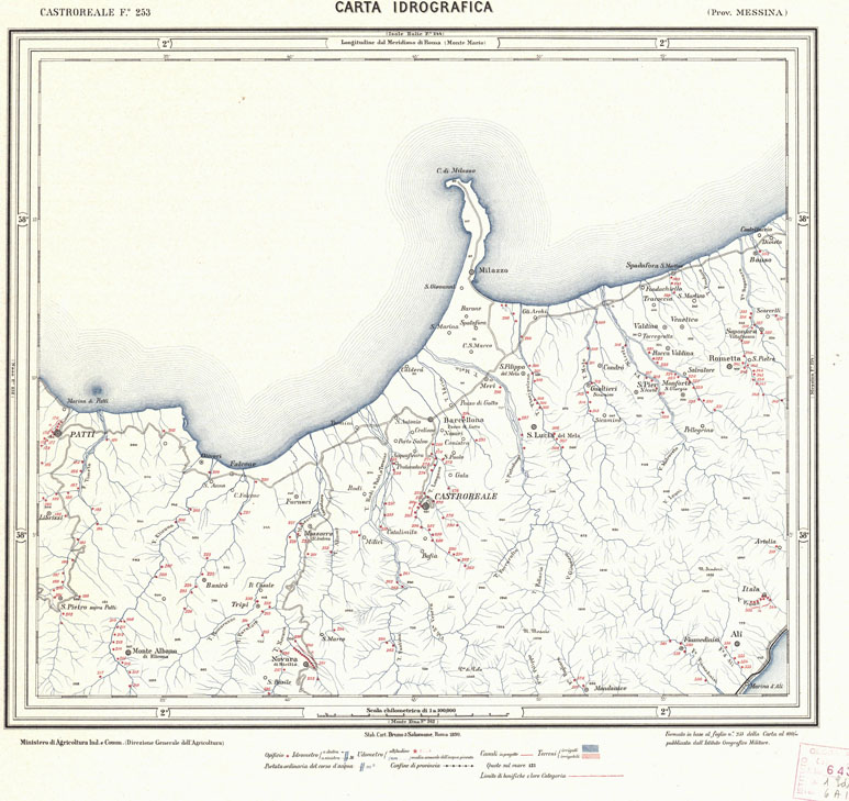 CARTA IDROGRAFICA DEL REGNO D'ITALIA - Foglio 253 - Castroreale