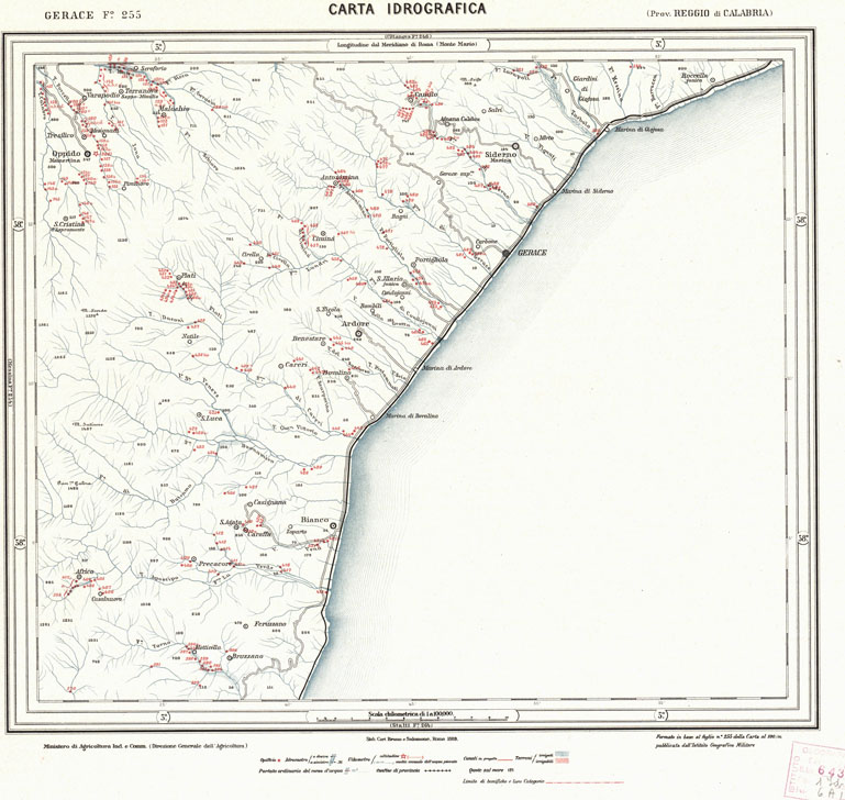 CARTA IDROGRAFICA DEL REGNO D'ITALIA - Foglio 255 - Gerace
