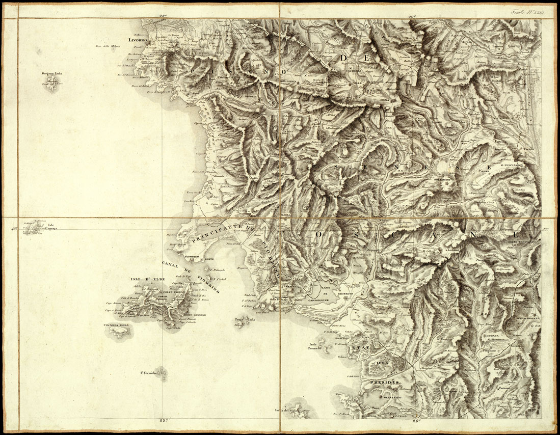 CARTE GENERALE DU THEATRE DE LA GUERRE EN ITALIE ET DANS LES ALPES...(Carta Generale del teatro della guerra in Italia...) - Foglio 23 - Isola d'Elba, Livorno, Grosseto, Siena