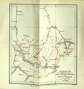 PRELIMINARI MAP OF THE ROUTES FOLLOWED BY THE MEMBERS OF THE AFGHAN BOUNDARY COMMISSION.