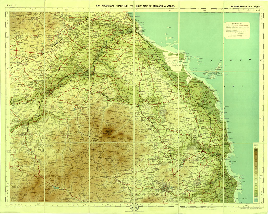 INGHILTERRA - BARTOLOMEW'S MAP OF ENGLAND AND WALES - NORTHUMBERLAND - NORTH - SHEET 1
