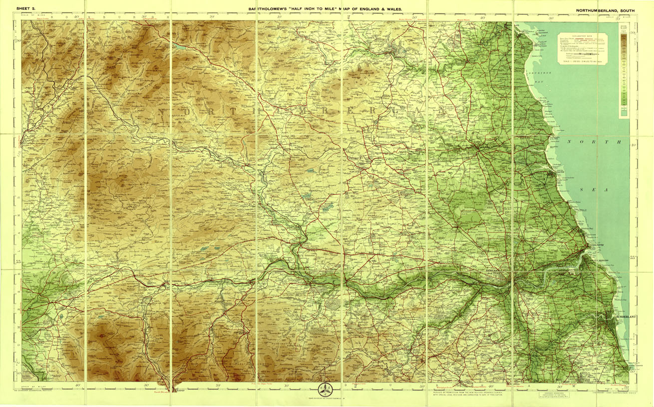 INGHILTERRA - BARTOLOMEW'S MAP OF ENGLAND AND WALES - NORTHUMBERLAND -NORTH - SHEET 2.