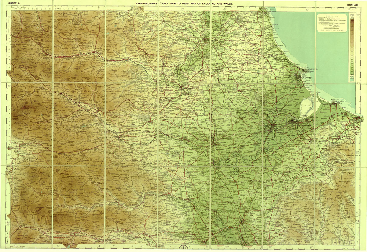 INGHILTERRA - BARTOLOMEW'S MAP OF ENGLAND AND WALES - DURHAM - SHEET 4