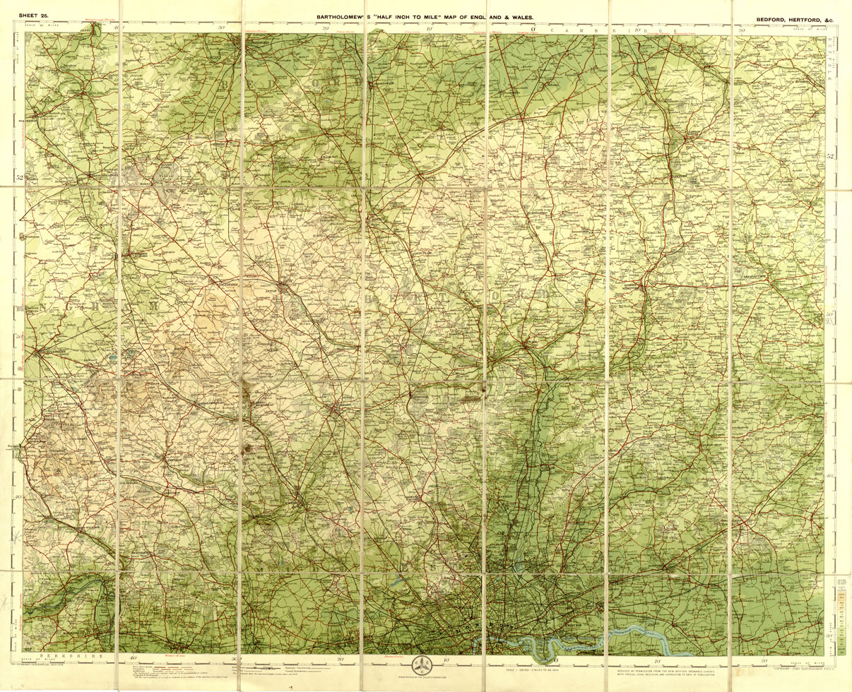 INGHILTERRA - BARTOLOMEW'S MAP OF ENGLAND AND WALES - BEDFORD, HERTFORD & C. - SHEET 25