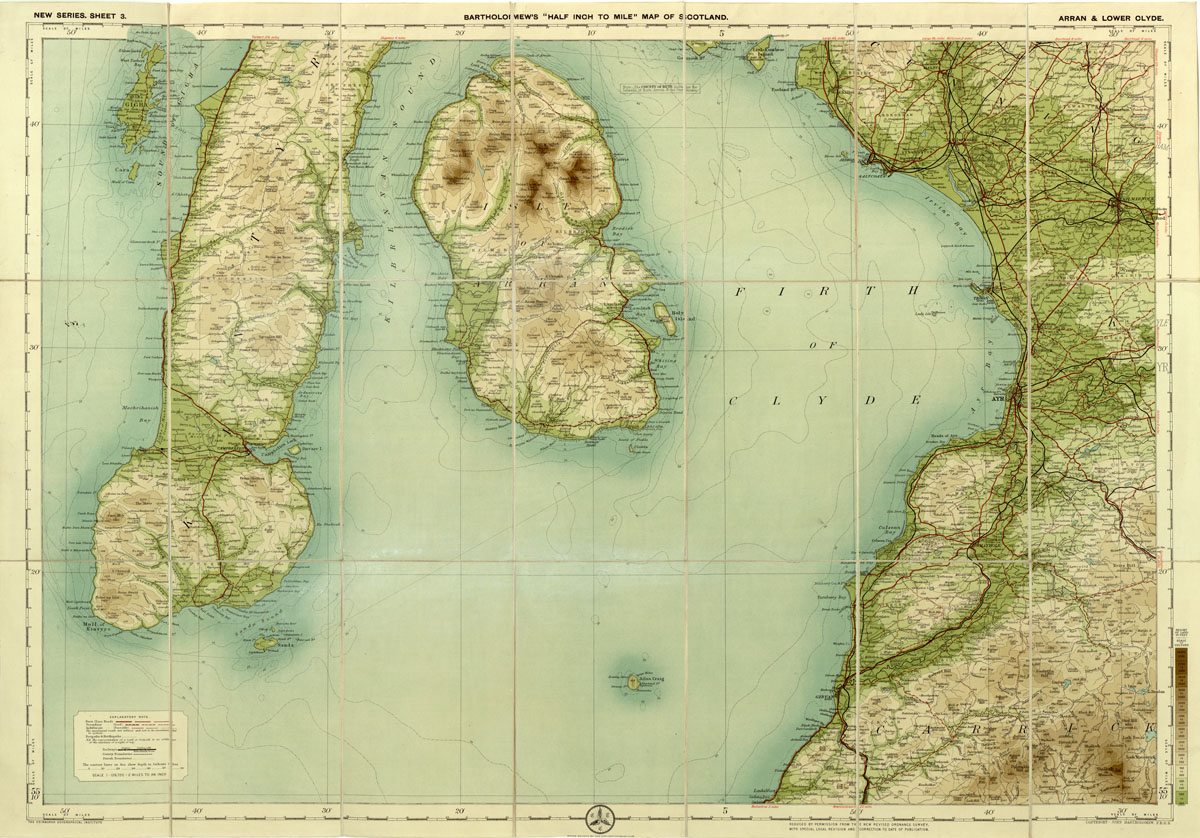 INGHILTERRA - BARTOLOMEW'S HALF - INCH TO MILE MAP OF SCOTLAND NEW SERIES - ARRAN & LOWER CLYDE SHEET 3
