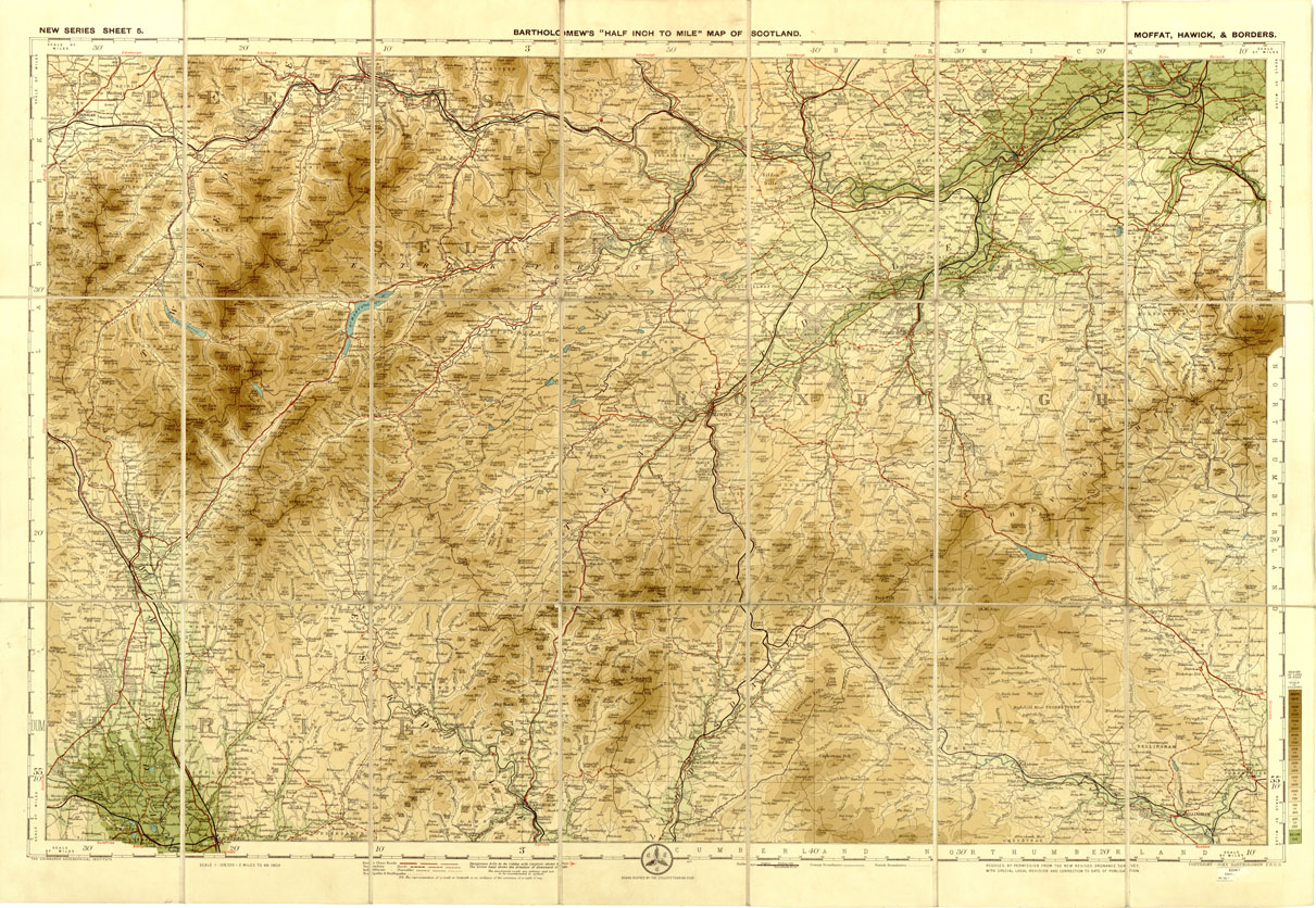 INGHILTERRA - BARTOLOMEW'S HALF - INCH TO MILE MAP OF SCOTLAND NEW SERIES - MOFFAT, HAWICH & BORDERS SHEET 5