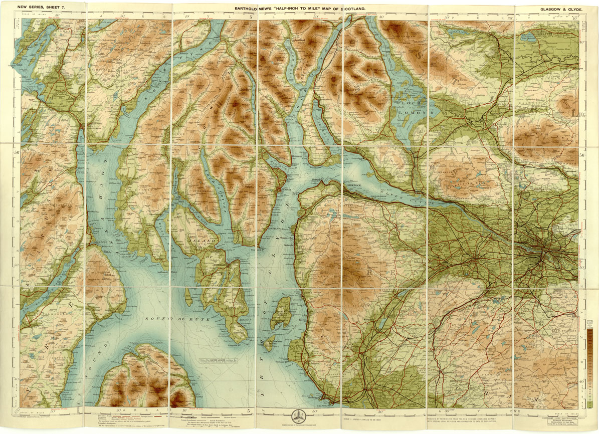 INGHILTERRA - BARTOLOMEW'S HALF - INCH TO MILE MAP OF SCOTLAND NEW SERIES - GLASGOW & CLYDE SHEET 7