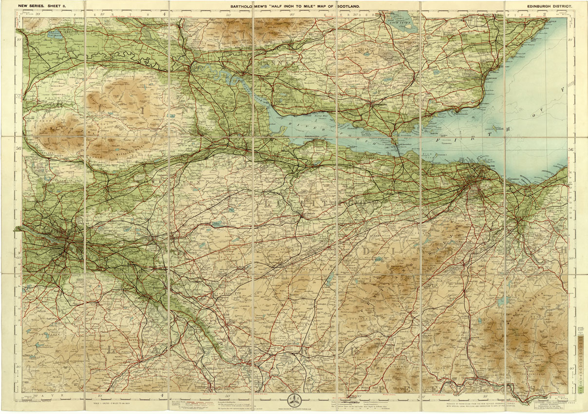 INGHILTERRA - BARTOLOMEW'S HALF - INCH TO MILE MAP OF SCOTLAND NEW SERIES - EDINBURGH DISTRICT SHEET 8