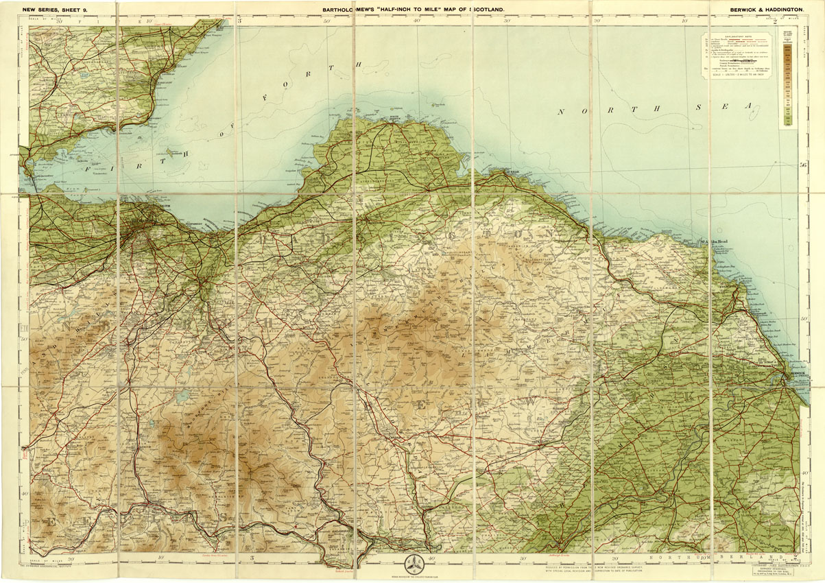 INGHILTERRA - BARTOLOMEW'S HALF - INCH TO MILE MAP OF SCOTLAND NEW SERIES - BERWICK & HADDINGTON SHEET 9