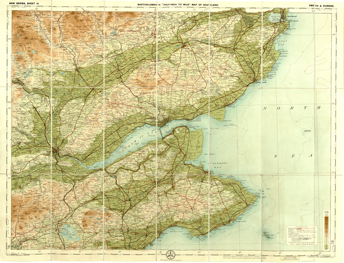 INGHILTERRA - BARTOLOMEW'S HALF - INCH TO MILE MAP OF SCOTLAND NEW SERIES - PERTH & DUNDEE SHEET 13