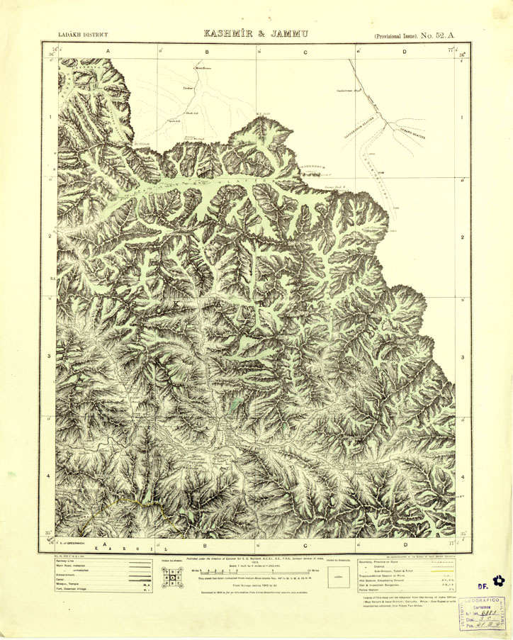 INDIA BRITANNICA - MAP OF INDIA - ANNI 1907-37-45 - KASHMIR & JAMMU LADAKH DISTRICT - Foglio n. 52A