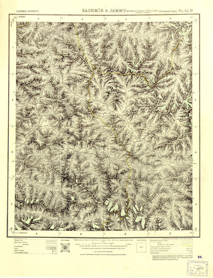 INDIA BRITANNICA - MAP OF INDIA - ANNI 1907-37-45 - KASHMIR & JAMMU LADAKH DISTRICT- Folgio n. 52B