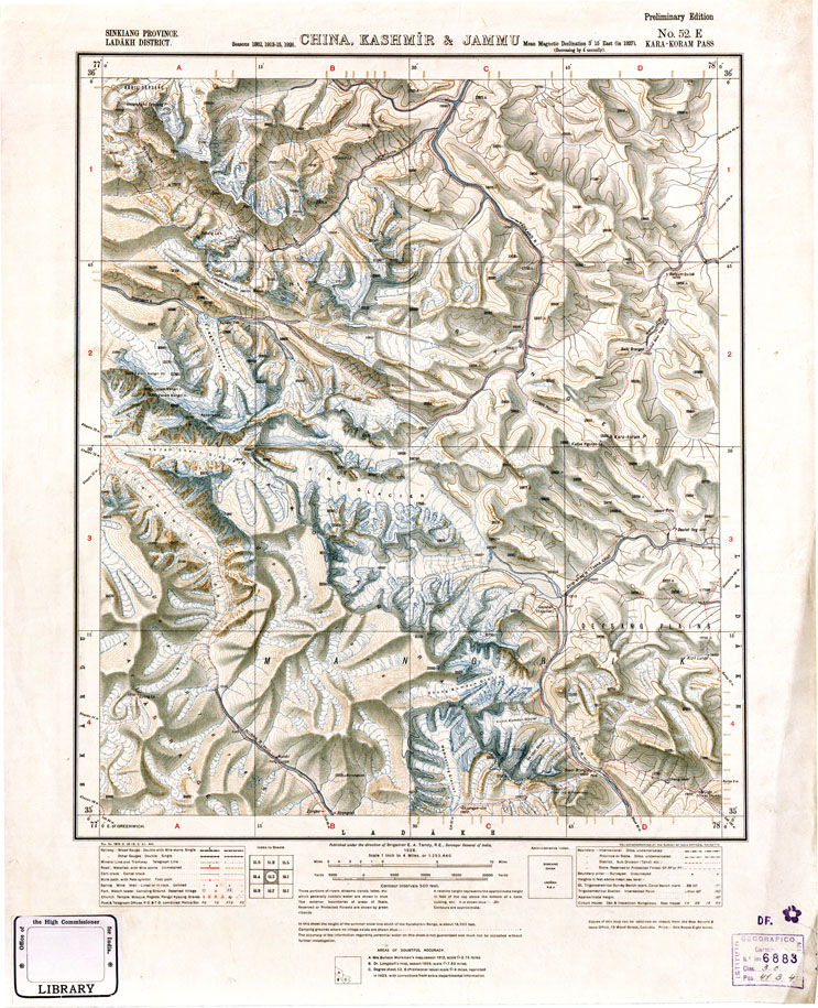 INDIA BRITANNICA - MAP OF INDIA - ANNI 1907-37-45 - KASHMIR & JAMMU SINKIANG PROVINCE - LADAKH DISTRICT Foglio n. 52E