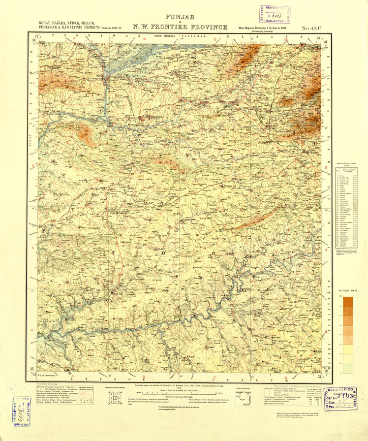 INDIA BRITANNICA - MAP OF INDIA - ANNI 1907-37-45 - PUNJAB & N.W. FRONTIER PROVINCE Foglio n. 43C