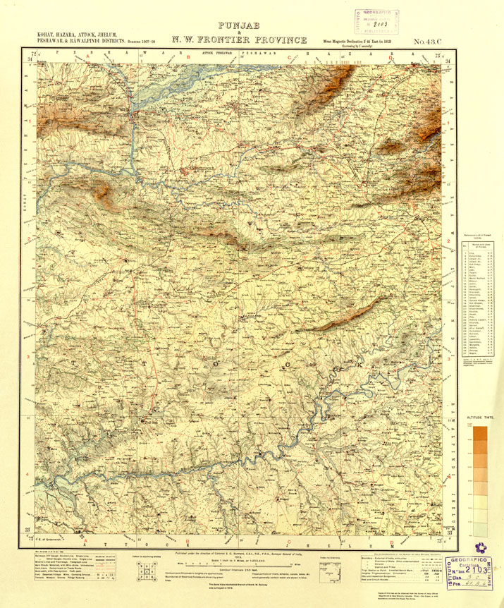 INDIA BRITANNICA - MAP OF INDIA - ANNI 1907-37-45 - PUNJAB & N.W. FRONTIER PROVINCE Foglio n. 43C