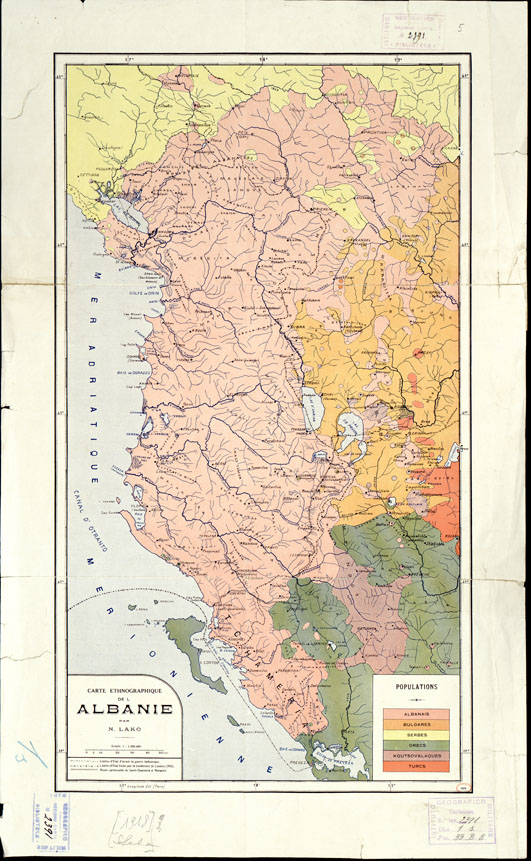 CARTE ETHNOGRAPHIQUE DEL ALBANIE PAR N. LAKO