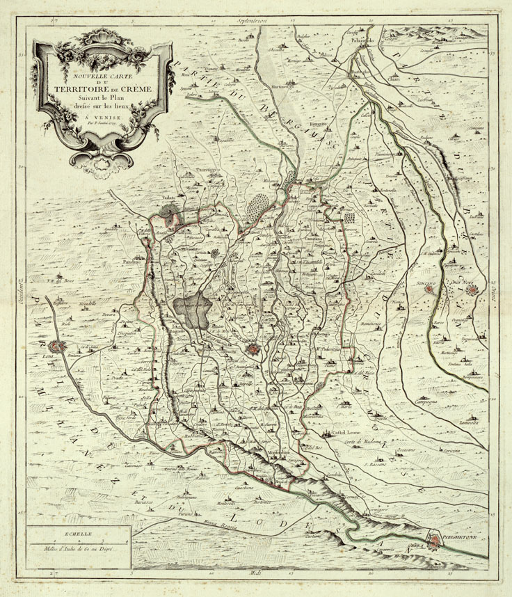 CARTE DI GEOGRAFIA-ATLANTE DEL SANTINI - Foglio 4-NOUVELLE CARTE DU TERRITOIRE DE CREME SUIVANT LE PLAN DRESSE' SUR LES LIEUX. A VENISE, 1779. P. SANTINI.