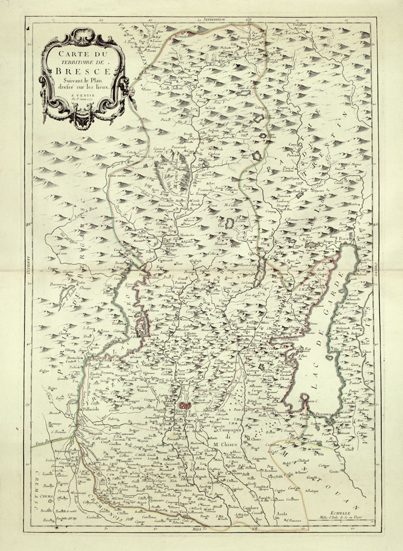 CARTE DI GEOGRAFIA-ATLANTE DEL SANTINI - Foglio 6-CARTE DU TERRITOIRE DE BRESCE SUIVANT LE PLAN DRESSE' SUR LES LIEUX. A VENISE, 1777. P. SANTINI.