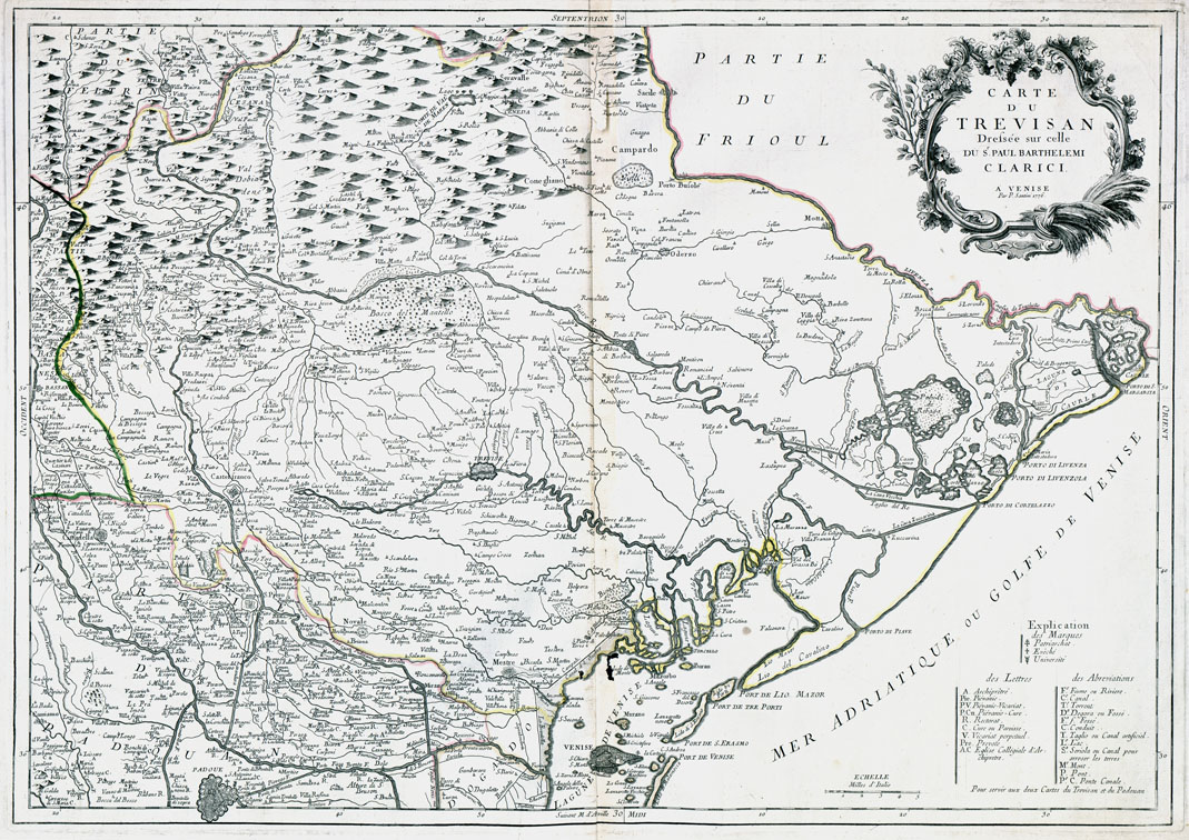 CARTE DI GEOGRAFIA-ATLANTE DEL SANTINI - Foglio 11-CARTE DU TREVISAN DRESSEE SUR CELLE DU S. PAUL BERTHELEMI CLARICI. A VENISE, 1776. P. SANTINI
