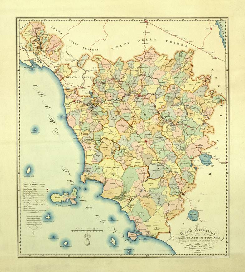 CARTA GEOMETRICA DEL GRANDUCATO DI TOSCANA DI GASPERO MANETTI