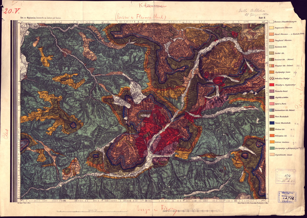 GEOLOGISCHE UDERSICHTSKARTE DES TIROLISCH - VENETIARISCHEN HODLANDES ZWISCHEN ETSCH UND PIAVE VON DR. EDMUND MOJSISOVIC V. MOJSUAR - Foglio 2