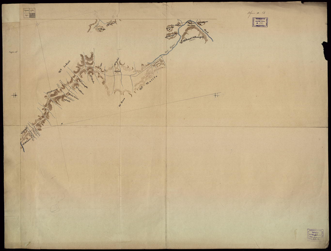 "Eseguita da Ufficiali dello Stato Maggiore Egiziano d'ordine di Rascid Pascià riprodotta in italiano per cura del Corpo di Stato Maggiore 1° Reparto (1888). La carta consta di quattro fogli a stampa policroma. L'orografia è rappresentata dimostrativamente con curve di livello a tratteggio, l'idrografia in azzurro, le scritture, strade e centri abitati in nero. Riproduzione in fotolitografia. La carta si riattacca a sud con la carta delle regioni Ghedaref, Daka e Gallabat (ved. N°797 d'inventario) alla stessa scala a e est con la carta delle regioni fra Massaua e il Barka."