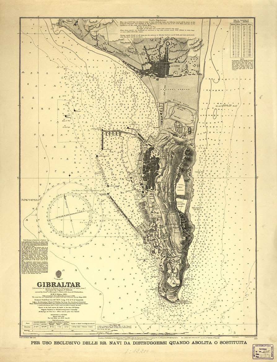 "Autore Hidrographic Office of the Admiralty - Londra. Editore riproduzione dell'Istituto Idrografico della Marina - Genova. Stampa in nero. Rappresentazione orografica a curve e quote batometriche. Grafia in lingua Inglese."