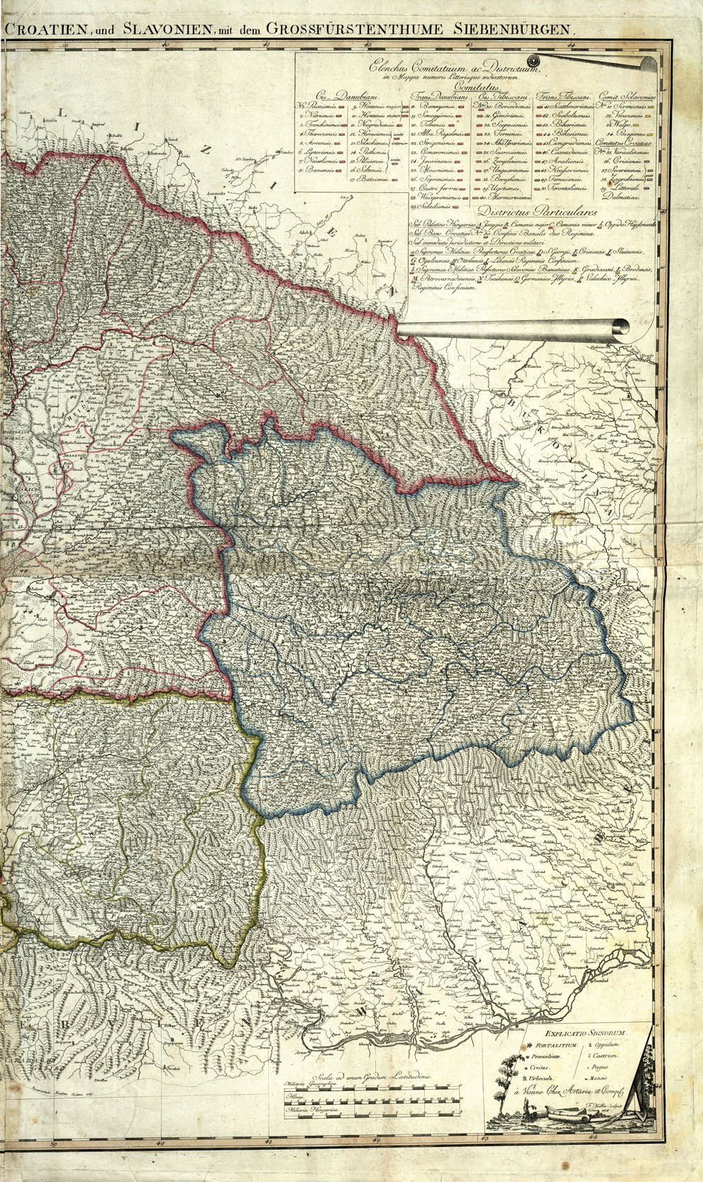 "Nuovissima Carta speciale e postale dei Regni d'Ungheria, Croazia, Slavonia, e del Gran Principato di Transilvania, disegnata secondo accuratissime osservazioni geografiche e le migliori fonti e secondo le migliori pubblicazioni postali. Vienna Stabilimento Artaria e C. 1806. Scala: vi sono tre scale grafiche, delle quali ciascuna dovrebbe corrispondere alla lunghezza di I° meridiano e trovarsi in armonia col reticolato. Invece il grado della scala grafica è di 157 mm., ed il grado del reticolato è di 159 mm. il rapporto è di 1:698.800 circa. E' incisa in rame in 4 fogli riuniti. Le montagne sono espresse in prospettiva sono segnati i passi, la viabilità, e l'idrografia. La Toponomastica è in tedesco. Le longitudini provengano dall'Isola del Ferro."