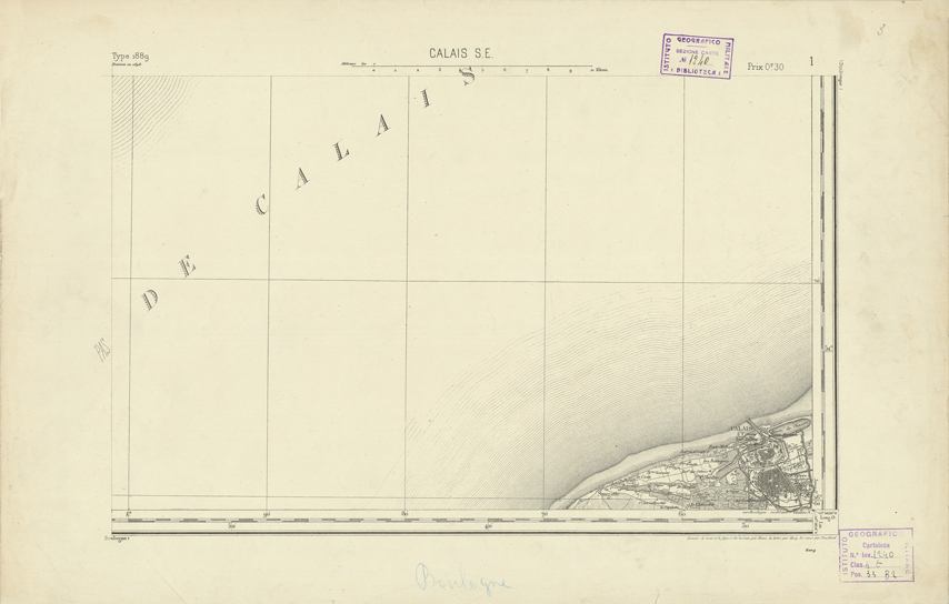 "Paris. Service Géographique de l'Armée, 1889. Ebbe origine dall'Edizione zincografica in quarti di foglio, stabilita dal 1879, per la carta detta de "L'Etat-Major". Infatti non rispondono più il sistema della riproduzione zincografica alle esigenze che la revisione dei fogli imponeva, per un inevitabile logoramento dei rami originali, fu proposta dapprima la correzione degli zinchi, ma questo, importando un lavoro lungo e gravoso, si adottò il procedimento galvanico. I rami galvanici ottenuti e corretti secondo questo sistema presero il nome di "édition type 1889". Allo scopo di facilitare l'incisione fu adoperata la suddivisione in quarti di foglio come per l'edizione zincografica. La revisione dei fogli di questo tipo non fu iniziata che nel 1893. Dal catalogo del S.G.A. risultano mancanti a questa edizione i dipartimenti della "Moselle", del "Bas-Rhin" e del "Haut-Rhin" per i quali non esiste che una edizione in fogli interi aggiornata nel 1901."