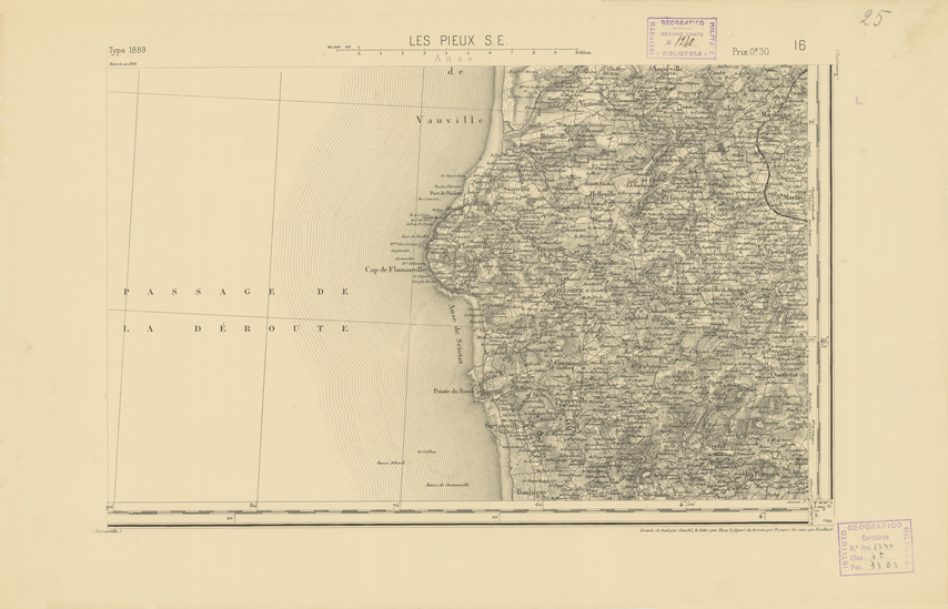 "Paris. Service Géographique de l'Armée, 1889. Ebbe origine dall'Edizione zincografica in quarti di foglio, stabilita dal 1879, per la carta detta de "L'Etat-Major". Infatti non rispondono più il sistema della riproduzione zincografica alle esigenze che la revisione dei fogli imponeva, per un inevitabile logoramento dei rami originali, fu proposta dapprima la correzione degli zinchi, ma questo, importando un lavoro lungo e gravoso, si adottò il procedimento galvanico. I rami galvanici ottenuti e corretti secondo questo sistema presero il nome di "édition type 1889". Allo scopo di facilitare l'incisione fu adoperata la suddivisione in quarti di foglio come per l'edizione zincografica. La revisione dei fogli di questo tipo non fu iniziata che nel 1893. Dal catalogo del S.G.A. risultano mancanti a questa edizione i dipartimenti della "Moselle", del "Bas-Rhin" e del "Haut-Rhin" per i quali non esiste che una edizione in fogli interi aggiornata nel 1901."