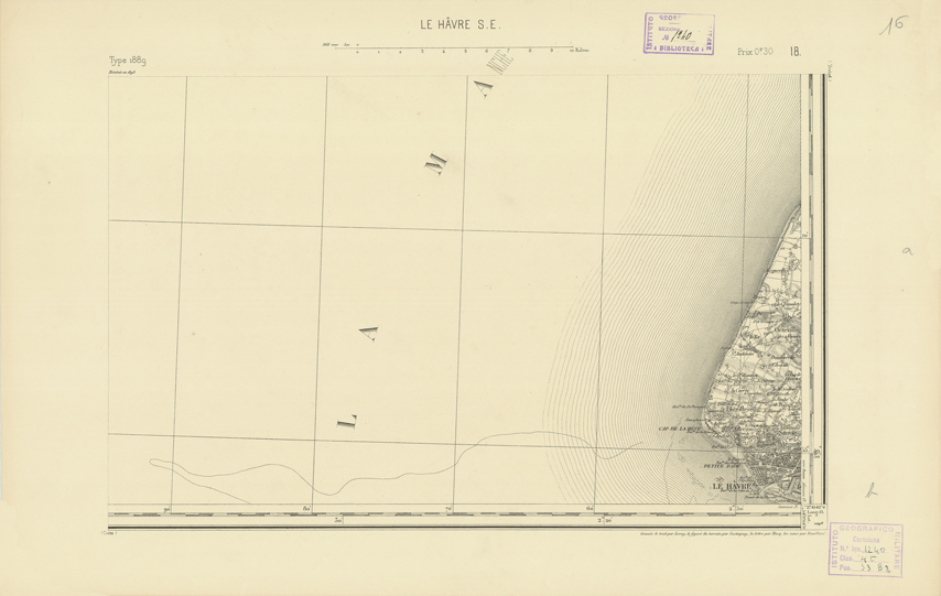 "Paris. Service Géographique de l'Armée, 1889. Ebbe origine dall'Edizione zincografica in quarti di foglio, stabilita dal 1879, per la carta detta de "L'Etat-Major". Infatti non rispondono più il sistema della riproduzione zincografica alle esigenze che la revisione dei fogli imponeva, per un inevitabile logoramento dei rami originali, fu proposta dapprima la correzione degli zinchi, ma questo, importando un lavoro lungo e gravoso, si adottò il procedimento galvanico. I rami galvanici ottenuti e corretti secondo questo sistema presero il nome di "édition type 1889". Allo scopo di facilitare l'incisione fu adoperata la suddivisione in quarti di foglio come per l'edizione zincografica. La revisione dei fogli di questo tipo non fu iniziata che nel 1893. Dal catalogo del S.G.A. risultano mancanti a questa edizione i dipartimenti della "Moselle", del "Bas-Rhin" e del "Haut-Rhin" per i quali non esiste che una edizione in fogli interi aggiornata nel 1901."