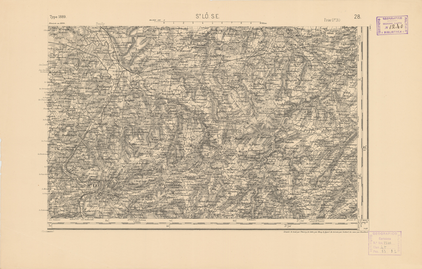 "Paris. Service Géographique de l'Armée, 1889. Ebbe origine dall'Edizione zincografica in quarti di foglio, stabilita dal 1879, per la carta detta de "L'Etat-Major". Infatti non rispondono più il sistema della riproduzione zincografica alle esigenze che la revisione dei fogli imponeva, per un inevitabile logoramento dei rami originali, fu proposta dapprima la correzione degli zinchi, ma questo, importando un lavoro lungo e gravoso, si adottò il procedimento galvanico. I rami galvanici ottenuti e corretti secondo questo sistema presero il nome di "édition type 1889". Allo scopo di facilitare l'incisione fu adoperata la suddivisione in quarti di foglio come per l'edizione zincografica. La revisione dei fogli di questo tipo non fu iniziata che nel 1893. Dal catalogo del S.G.A. risultano mancanti a questa edizione i dipartimenti della "Moselle", del "Bas-Rhin" e del "Haut-Rhin" per i quali non esiste che una edizione in fogli interi aggiornata nel 1901."