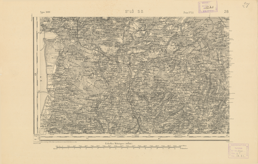 "Paris. Service Géographique de l'Armée, 1889. Ebbe origine dall'Edizione zincografica in quarti di foglio, stabilita dal 1879, per la carta detta de "L'Etat-Major". Infatti non rispondono più il sistema della riproduzione zincografica alle esigenze che la revisione dei fogli imponeva, per un inevitabile logoramento dei rami originali, fu proposta dapprima la correzione degli zinchi, ma questo, importando un lavoro lungo e gravoso, si adottò il procedimento galvanico. I rami galvanici ottenuti e corretti secondo questo sistema presero il nome di "édition type 1889". Allo scopo di facilitare l'incisione fu adoperata la suddivisione in quarti di foglio come per l'edizione zincografica. La revisione dei fogli di questo tipo non fu iniziata che nel 1893. Dal catalogo del S.G.A. risultano mancanti a questa edizione i dipartimenti della "Moselle", del "Bas-Rhin" e del "Haut-Rhin" per i quali non esiste che una edizione in fogli interi aggiornata nel 1901."