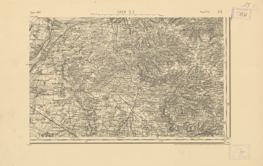 "Paris. Service Géographique de l'Armée, 1889. Ebbe origine dall'Edizione zincografica in quarti di foglio, stabilita dal 1879, per la carta detta de "L'Etat-Major". Infatti non rispondono più il sistema della riproduzione zincografica alle esigenze che la revisione dei fogli imponeva, per un inevitabile logoramento dei rami originali, fu proposta dapprima la correzione degli zinchi, ma questo, importando un lavoro lungo e gravoso, si adottò il procedimento galvanico. I rami galvanici ottenuti e corretti secondo questo sistema presero il nome di "édition type 1889". Allo scopo di facilitare l'incisione fu adoperata la suddivisione in quarti di foglio come per l'edizione zincografica. La revisione dei fogli di questo tipo non fu iniziata che nel 1893. Dal catalogo del S.G.A. risultano mancanti a questa edizione i dipartimenti della "Moselle", del "Bas-Rhin" e del "Haut-Rhin" per i quali non esiste che una edizione in fogli interi aggiornata nel 1901."