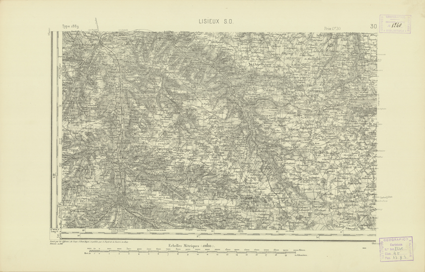 "Paris. Service Géographique de l'Armée, 1889. Ebbe origine dall'Edizione zincografica in quarti di foglio, stabilita dal 1879, per la carta detta de "L'Etat-Major". Infatti non rispondono più il sistema della riproduzione zincografica alle esigenze che la revisione dei fogli imponeva, per un inevitabile logoramento dei rami originali, fu proposta dapprima la correzione degli zinchi, ma questo, importando un lavoro lungo e gravoso, si adottò il procedimento galvanico. I rami galvanici ottenuti e corretti secondo questo sistema presero il nome di "édition type 1889". Allo scopo di facilitare l'incisione fu adoperata la suddivisione in quarti di foglio come per l'edizione zincografica. La revisione dei fogli di questo tipo non fu iniziata che nel 1893. Dal catalogo del S.G.A. risultano mancanti a questa edizione i dipartimenti della "Moselle", del "Bas-Rhin" e del "Haut-Rhin" per i quali non esiste che una edizione in fogli interi aggiornata nel 1901."