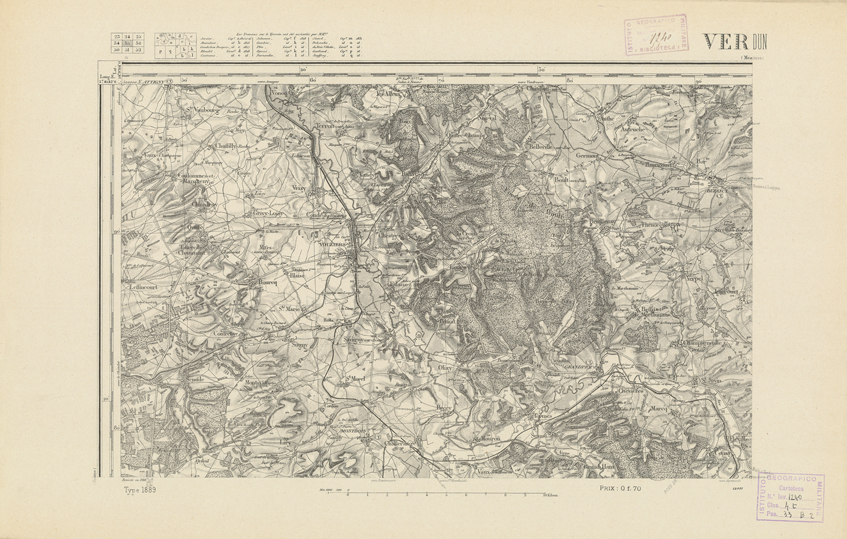 "Paris. Service Géographique de l'Armée, 1889. Ebbe origine dall'Edizione zincografica in quarti di foglio, stabilita dal 1879, per la carta detta de "L'Etat-Major". Infatti non rispondono più il sistema della riproduzione zincografica alle esigenze che la revisione dei fogli imponeva, per un inevitabile logoramento dei rami originali, fu proposta dapprima la correzione degli zinchi, ma questo, importando un lavoro lungo e gravoso, si adottò il procedimento galvanico. I rami galvanici ottenuti e corretti secondo questo sistema presero il nome di "édition type 1889". Allo scopo di facilitare l'incisione fu adoperata la suddivisione in quarti di foglio come per l'edizione zincografica. La revisione dei fogli di questo tipo non fu iniziata che nel 1893. Dal catalogo del S.G.A. risultano mancanti a questa edizione i dipartimenti della "Moselle", del "Bas-Rhin" e del "Haut-Rhin" per i quali non esiste che una edizione in fogli interi aggiornata nel 1901."