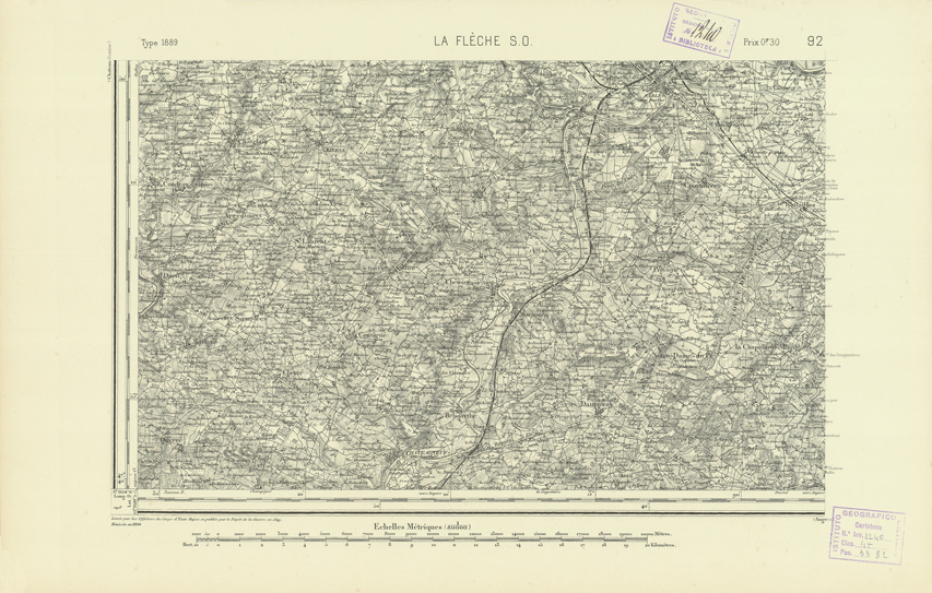 "Paris. Service Géographique de l'Armée, 1889. Ebbe origine dall'Edizione zincografica in quarti di foglio, stabilita dal 1879, per la carta detta de "L'Etat-Major". Infatti non rispondono più il sistema della riproduzione zincografica alle esigenze che la revisione dei fogli imponeva, per un inevitabile logoramento dei rami originali, fu proposta dapprima la correzione degli zinchi, ma questo, importando un lavoro lungo e gravoso, si adottò il procedimento galvanico. I rami galvanici ottenuti e corretti secondo questo sistema presero il nome di "édition type 1889". Allo scopo di facilitare l'incisione fu adoperata la suddivisione in quarti di foglio come per l'edizione zincografica. La revisione dei fogli di questo tipo non fu iniziata che nel 1893. Dal catalogo del S.G.A. risultano mancanti a questa edizione i dipartimenti della "Moselle", del "Bas-Rhin" e del "Haut-Rhin" per i quali non esiste che una edizione in fogli interi aggiornata nel 1901."