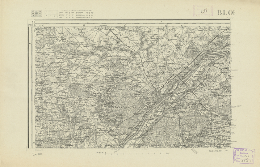 "Paris. Service Géographique de l'Armée, 1889. Ebbe origine dall'Edizione zincografica in quarti di foglio, stabilita dal 1879, per la carta detta de "L'Etat-Major". Infatti non rispondono più il sistema della riproduzione zincografica alle esigenze che la revisione dei fogli imponeva, per un inevitabile logoramento dei rami originali, fu proposta dapprima la correzione degli zinchi, ma questo, importando un lavoro lungo e gravoso, si adottò il procedimento galvanico. I rami galvanici ottenuti e corretti secondo questo sistema presero il nome di "édition type 1889". Allo scopo di facilitare l'incisione fu adoperata la suddivisione in quarti di foglio come per l'edizione zincografica. La revisione dei fogli di questo tipo non fu iniziata che nel 1893. Dal catalogo del S.G.A. risultano mancanti a questa edizione i dipartimenti della "Moselle", del "Bas-Rhin" e del "Haut-Rhin" per i quali non esiste che una edizione in fogli interi aggiornata nel 1901."