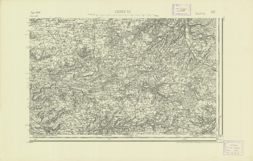 "Paris. Service Géographique de l'Armée, 1889. Ebbe origine dall'Edizione zincografica in quarti di foglio, stabilita dal 1879, per la carta detta de "L'Etat-Major". Infatti non rispondono più il sistema della riproduzione zincografica alle esigenze che la revisione dei fogli imponeva, per un inevitabile logoramento dei rami originali, fu proposta dapprima la correzione degli zinchi, ma questo, importando un lavoro lungo e gravoso, si adottò il procedimento galvanico. I rami galvanici ottenuti e corretti secondo questo sistema presero il nome di "édition type 1889". Allo scopo di facilitare l'incisione fu adoperata la suddivisione in quarti di foglio come per l'edizione zincografica. La revisione dei fogli di questo tipo non fu iniziata che nel 1893. Dal catalogo del S.G.A. risultano mancanti a questa edizione i dipartimenti della "Moselle", del "Bas-Rhin" e del "Haut-Rhin" per i quali non esiste che una edizione in fogli interi aggiornata nel 1901."