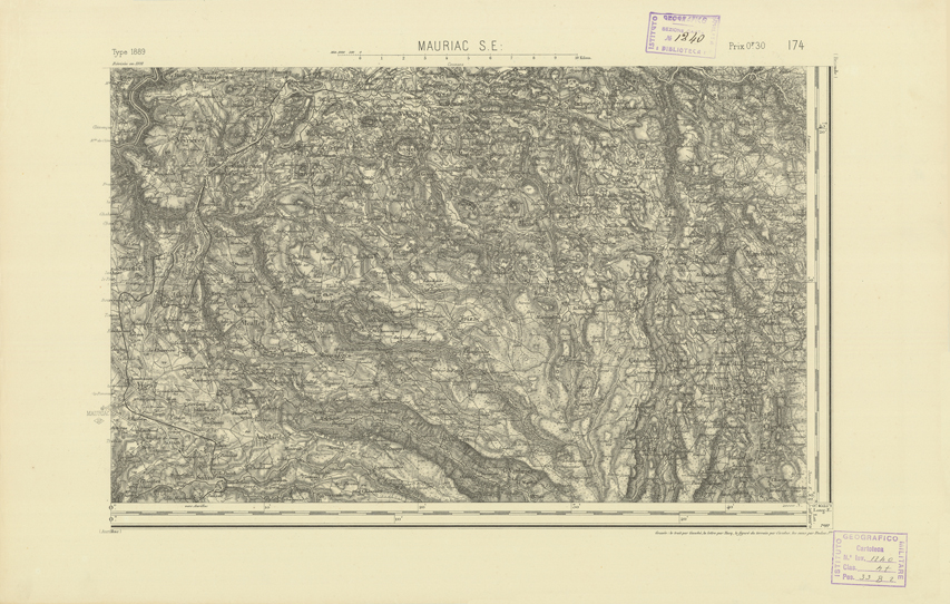 "Paris. Service Géographique de l'Armée, 1889. Ebbe origine dall'Edizione zincografica in quarti di foglio, stabilita dal 1879, per la carta detta de "L'Etat-Major". Infatti non rispondono più il sistema della riproduzione zincografica alle esigenze che la revisione dei fogli imponeva, per un inevitabile logoramento dei rami originali, fu proposta dapprima la correzione degli zinchi, ma questo, importando un lavoro lungo e gravoso, si adottò il procedimento galvanico. I rami galvanici ottenuti e corretti secondo questo sistema presero il nome di "édition type 1889". Allo scopo di facilitare l'incisione fu adoperata la suddivisione in quarti di foglio come per l'edizione zincografica. La revisione dei fogli di questo tipo non fu iniziata che nel 1893. Dal catalogo del S.G.A. risultano mancanti a questa edizione i dipartimenti della "Moselle", del "Bas-Rhin" e del "Haut-Rhin" per i quali non esiste che una edizione in fogli interi aggiornata nel 1901."