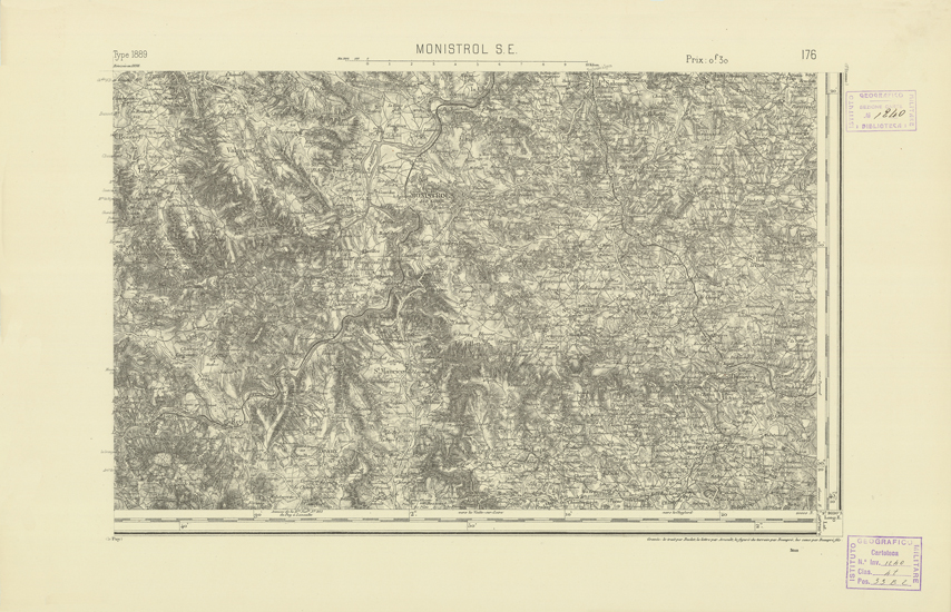 "Paris. Service Géographique de l'Armée, 1889. Ebbe origine dall'Edizione zincografica in quarti di foglio, stabilita dal 1879, per la carta detta de "L'Etat-Major". Infatti non rispondono più il sistema della riproduzione zincografica alle esigenze che la revisione dei fogli imponeva, per un inevitabile logoramento dei rami originali, fu proposta dapprima la correzione degli zinchi, ma questo, importando un lavoro lungo e gravoso, si adottò il procedimento galvanico. I rami galvanici ottenuti e corretti secondo questo sistema presero il nome di "édition type 1889". Allo scopo di facilitare l'incisione fu adoperata la suddivisione in quarti di foglio come per l'edizione zincografica. La revisione dei fogli di questo tipo non fu iniziata che nel 1893. Dal catalogo del S.G.A. risultano mancanti a questa edizione i dipartimenti della "Moselle", del "Bas-Rhin" e del "Haut-Rhin" per i quali non esiste che una edizione in fogli interi aggiornata nel 1901."