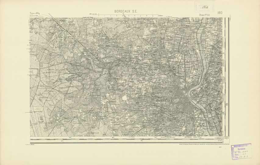 "Paris. Service Géographique de l'Armée, 1889. Ebbe origine dall'Edizione zincografica in quarti di foglio, stabilita dal 1879, per la carta detta de "L'Etat-Major". Infatti non rispondono più il sistema della riproduzione zincografica alle esigenze che la revisione dei fogli imponeva, per un inevitabile logoramento dei rami originali, fu proposta dapprima la correzione degli zinchi, ma questo, importando un lavoro lungo e gravoso, si adottò il procedimento galvanico. I rami galvanici ottenuti e corretti secondo questo sistema presero il nome di "édition type 1889". Allo scopo di facilitare l'incisione fu adoperata la suddivisione in quarti di foglio come per l'edizione zincografica. La revisione dei fogli di questo tipo non fu iniziata che nel 1893. Dal catalogo del S.G.A. risultano mancanti a questa edizione i dipartimenti della "Moselle", del "Bas-Rhin" e del "Haut-Rhin" per i quali non esiste che una edizione in fogli interi aggiornata nel 1901."