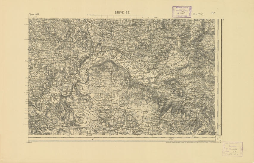 "Paris. Service Géographique de l'Armée, 1889. Ebbe origine dall'Edizione zincografica in quarti di foglio, stabilita dal 1879, per la carta detta de "L'Etat-Major". Infatti non rispondono più il sistema della riproduzione zincografica alle esigenze che la revisione dei fogli imponeva, per un inevitabile logoramento dei rami originali, fu proposta dapprima la correzione degli zinchi, ma questo, importando un lavoro lungo e gravoso, si adottò il procedimento galvanico. I rami galvanici ottenuti e corretti secondo questo sistema presero il nome di "édition type 1889". Allo scopo di facilitare l'incisione fu adoperata la suddivisione in quarti di foglio come per l'edizione zincografica. La revisione dei fogli di questo tipo non fu iniziata che nel 1893. Dal catalogo del S.G.A. risultano mancanti a questa edizione i dipartimenti della "Moselle", del "Bas-Rhin" e del "Haut-Rhin" per i quali non esiste che una edizione in fogli interi aggiornata nel 1901."
