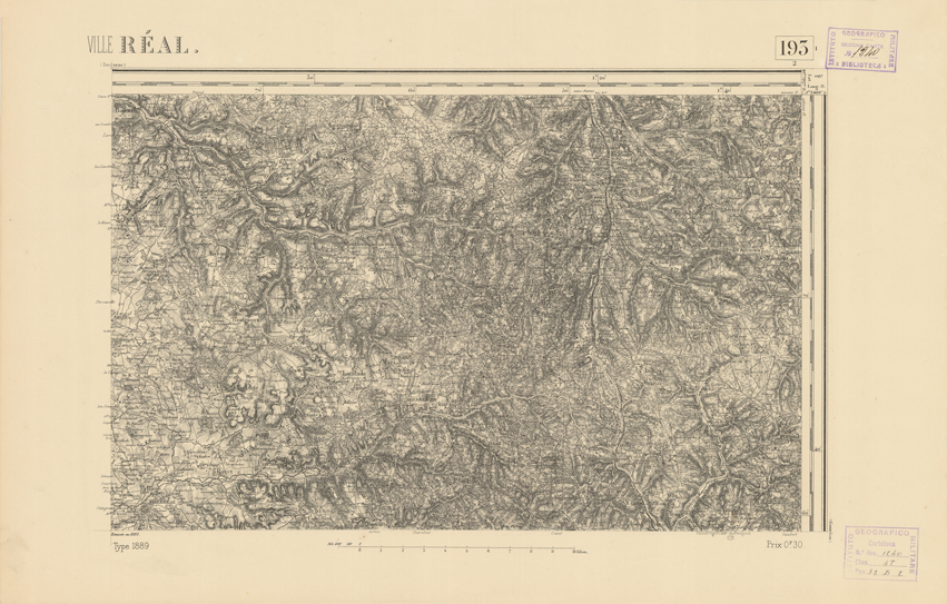 "Paris. Service Géographique de l'Armée, 1889. Ebbe origine dall'Edizione zincografica in quarti di foglio, stabilita dal 1879, per la carta detta de "L'Etat-Major". Infatti non rispondono più il sistema della riproduzione zincografica alle esigenze che la revisione dei fogli imponeva, per un inevitabile logoramento dei rami originali, fu proposta dapprima la correzione degli zinchi, ma questo, importando un lavoro lungo e gravoso, si adottò il procedimento galvanico. I rami galvanici ottenuti e corretti secondo questo sistema presero il nome di "édition type 1889". Allo scopo di facilitare l'incisione fu adoperata la suddivisione in quarti di foglio come per l'edizione zincografica. La revisione dei fogli di questo tipo non fu iniziata che nel 1893. Dal catalogo del S.G.A. risultano mancanti a questa edizione i dipartimenti della "Moselle", del "Bas-Rhin" e del "Haut-Rhin" per i quali non esiste che una edizione in fogli interi aggiornata nel 1901."