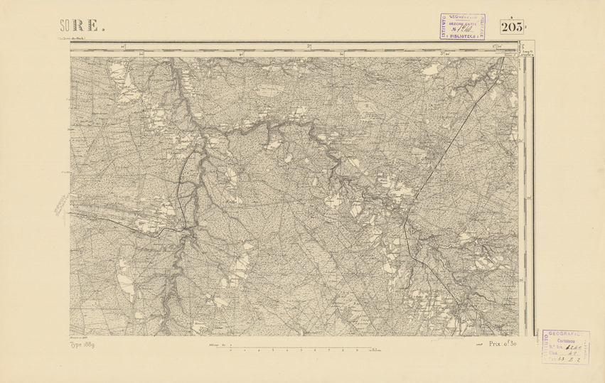 "Paris. Service Géographique de l'Armée, 1889. Ebbe origine dall'Edizione zincografica in quarti di foglio, stabilita dal 1879, per la carta detta de "L'Etat-Major". Infatti non rispondono più il sistema della riproduzione zincografica alle esigenze che la revisione dei fogli imponeva, per un inevitabile logoramento dei rami originali, fu proposta dapprima la correzione degli zinchi, ma questo, importando un lavoro lungo e gravoso, si adottò il procedimento galvanico. I rami galvanici ottenuti e corretti secondo questo sistema presero il nome di "édition type 1889". Allo scopo di facilitare l'incisione fu adoperata la suddivisione in quarti di foglio come per l'edizione zincografica. La revisione dei fogli di questo tipo non fu iniziata che nel 1893. Dal catalogo del S.G.A. risultano mancanti a questa edizione i dipartimenti della "Moselle", del "Bas-Rhin" e del "Haut-Rhin" per i quali non esiste che una edizione in fogli interi aggiornata nel 1901."