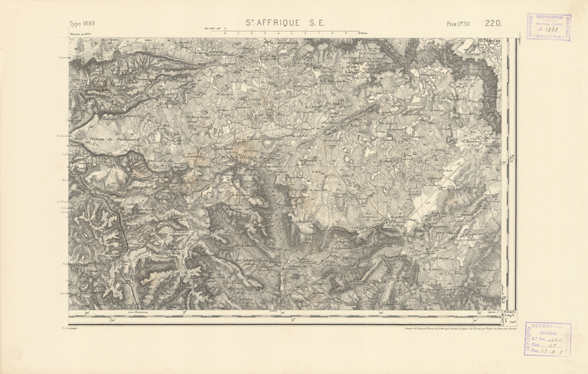 "Paris. Service Géographique de l'Armée, 1889. Ebbe origine dall'Edizione zincografica in quarti di foglio, stabilita dal 1879, per la carta detta de "L'Etat-Major". Infatti non rispondono più il sistema della riproduzione zincografica alle esigenze che la revisione dei fogli imponeva, per un inevitabile logoramento dei rami originali, fu proposta dapprima la correzione degli zinchi, ma questo, importando un lavoro lungo e gravoso, si adottò il procedimento galvanico. I rami galvanici ottenuti e corretti secondo questo sistema presero il nome di "édition type 1889". Allo scopo di facilitare l'incisione fu adoperata la suddivisione in quarti di foglio come per l'edizione zincografica. La revisione dei fogli di questo tipo non fu iniziata che nel 1893. Dal catalogo del S.G.A. risultano mancanti a questa edizione i dipartimenti della "Moselle", del "Bas-Rhin" e del "Haut-Rhin" per i quali non esiste che una edizione in fogli interi aggiornata nel 1901."